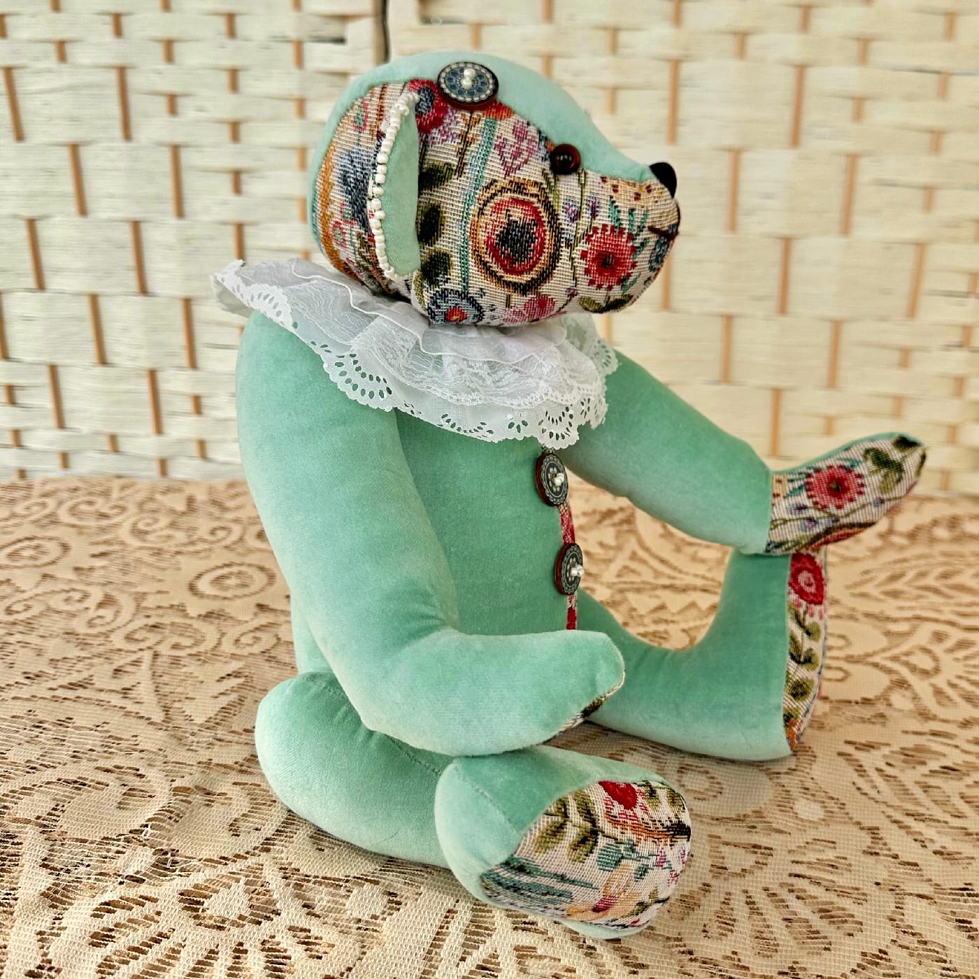 Hi, I’m Chris a textile artist and from my home workshop I make Collectable Artist Bears & Toys. Traditionally made with cotter joints and UK glass eyes using Mohair, Tweed and fabrics.