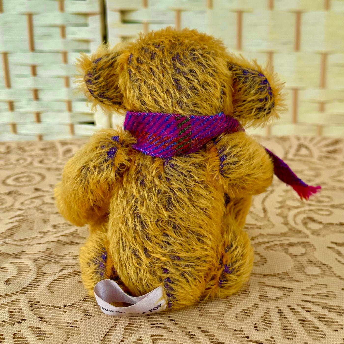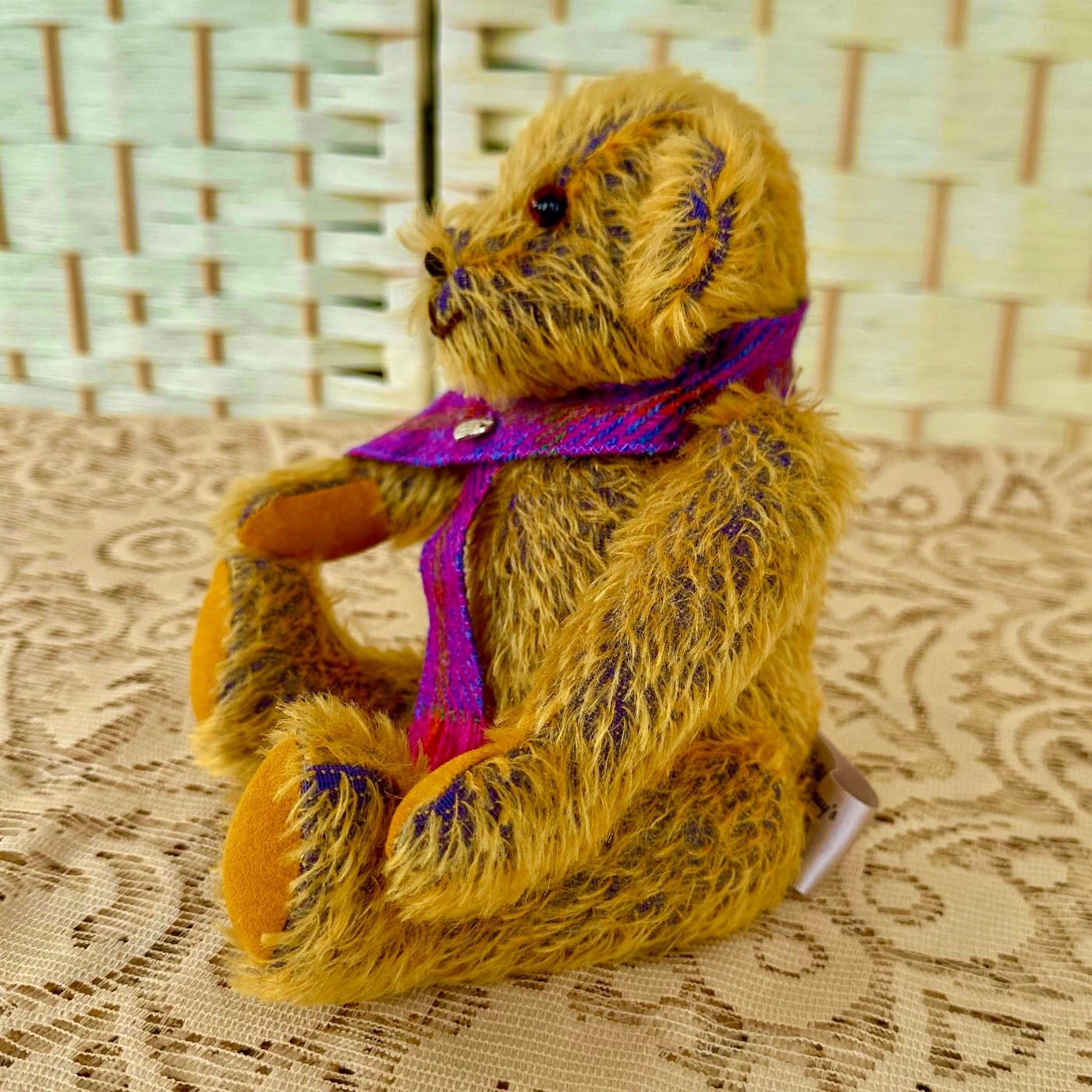A Collectable Artist Teddy Bear – Kirk is a handsome one-of-a-kind bear. He’s wearing a Harris Tweed scarf with heart charm.
